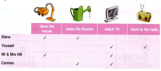 Elena cleaned the house and watered the flower.