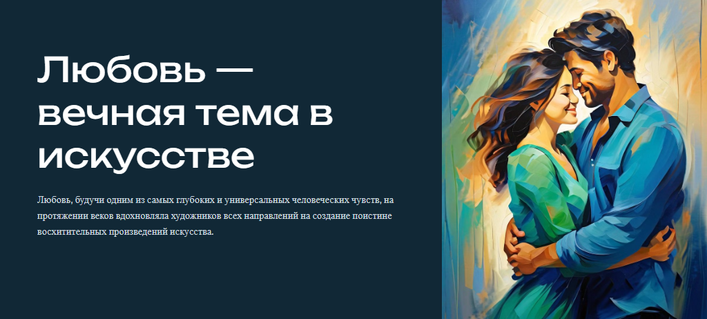 Любовь — вечная тема в искусстве Опубликовано 11 апреля, 2024 автором Avetsardaryan Поделиться ссылкой: Нажмите, чтобы поделиться в X (Открывается в новом окне) X Нажмите, чтобы открыть на Facebook (Открывается в новом окне) Facebook Нравится Загрузка... Похожее